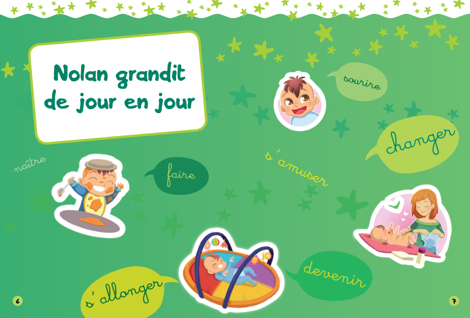 J’ai le plaisir de collaborer régulièrement avec les éditions HACHETTE ANTOINE (ex-filiale de Hachette Livre au Liban) et de créer des principes graphiques intérieurs et couvertures en parascolaire maternelle, principalement en français et anglais, destinés aux enfants libanais, marocains ou des Pays du Golfe.